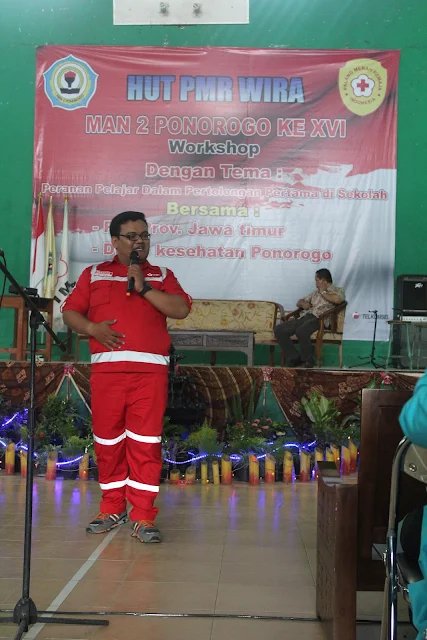 Dalam rangka Peringatan HUT ke XVI tahun 2016 PMR MAN 2 Ponorogo mengadakan Workshop Pertolongan Pertama dengan Tema “Peran Pelajar dalam Pertolongan Pertama di Sekolah” tanggal 21 Februari 2016 bertempat di GOR MAN 2 Ponorogo bekerjasama dengan PMI Provinsi Jawa Timur dan Dinas Kesehatan Kabupaten Ponorogo.
